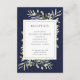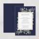 Med känsliga akvarellblad på en mörkblå bakgrund kan detta eleganta botaniska bröllopsinbjudan anpassas med din speciella bröllopsdagsinformation. Designad av Thisisnotme