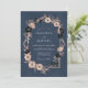 Denna design har en sofistikerad mörkblå bakgrund som accentueras av lysande rose gold botaniska konturer. Eleganta rosablommiga och djupt indigofärgade anemoneblommor skapar ett slående blomsterarrangemang perfekt för en formell kvällshändelse. Det stämningsfulla färgspektrumet kombinerar mörka toner med metalliska höjdpunkter för en romantisk, polerad look.
