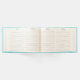 Vacker design med tealblå kolumner för alla tillfällen. Information om evenemangets namn och datum kan läggas till på bokens rygg.