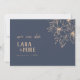 Mörkblå mjuka bröllopskort för "Save the Date", ett sofistikerat och elegant sätt att tillkännage er speciella dag. Detta kort har en lyxig mörkblå bakgrund som utstrålar klass och stil, kompletterad med mjuka och ömtåliga designelement. Den minimalistiska typografin ger ett modernt tilltal, medan den dämpade färgpaletten säkerställer en tidlös charm. Perfekt för par som söker ett förfinat men subtilt tillkännagivande, sätter detta kort tonen för ett oförglömligt bröllop. Tillverkat av material av hög kvalitet, har det en snygg och professionell finish, vilket gör det till ett idealiskt val för en chic och elegant fest.