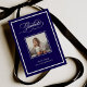 Detta formella och moderna examensbevis för klassen 2026 har en mörkblå bakgrund med en klassisk vit ram. Ett foto av examenkandidaten placeras i mitten, och elegant fancy kalligrafi skriver "examen" högst upp. En lyxig, sofistikerad look för den vuxna examenkandidaten.