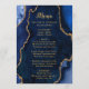 Visa dina menyval med stil med denna eleganta bröllopsmeny med en marinblå agat-marmorerad design accentuerad med gulddetaljer. Den geodinspirerade bakgrunden skapar en sofistikerad look, perfekt för höst- och vinterbröllop, formella firanden eller kvällsevent. Designad för att samordna med din bröllopspappersutstyrsserie är denna meny idealisk för att tydligt presentera rätter samtidigt som den tillför en lyxig touch till din dukning. Den rena typografin säkerställer läsbarhet samtidigt som den kompletterar agatstrukturen. Personalisera enkelt all text för att passa din meny och händelsedetaljer, vilket gör den till ett vackert val inte bara för bröllop utan också för förlovningsfester, årsdagar och andra formella tillfällen.