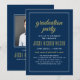 Mörkblå och Guld Foto Examenfest \n becomes Inbjudningar