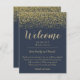 Mörkblå och guld vigsel välkomst hotell kort antec
