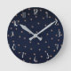 Mörkblå och roséguld Rosa glitterstjärnor Stjärn- Rund Klocka