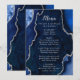 Visa dina menyval med stil med denna eleganta bröllopsmeny med en marinblå agat-marmorerad design accentuerad med silverdetaljer. Den geodinspirerade bakgrunden skapar en sofistikerad look, perfekt för höst- och vinterbröllop, formella firanden eller kvällsevent. Designad för att koordinera med din bröllopspappersutstyrsserie, är denna meny idealisk för att presentera rätter tydligt samtidigt som den tillför en lyxig touch till din dukning. Den rena typografin säkerställer läsbarhet samtidigt som den kompletterar agatstrukturen. Personanpassa enkelt all text för att passa din meny och händelsedetaljer, vilket gör den till ett vackert val inte bara för bröllop utan också för förlovningsfester, årsdagar och andra formella tillfällen.