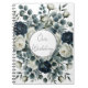Mörkblå och vita moderna blomsterbröllop anteckningsbok