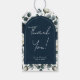 Mörkblå och vita moderna blomsterbröllop presentetikett
