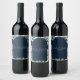 Mörkblå och vita moderna blomsterbröllopsetikett för vin. Anpassa denna vinetikett för ditt bröllop eller evenemang.