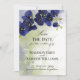 Elegant och konstnärlig Spara datumet-inbjudan med en fantastisk akvarell mörkblå orkidéblomma och akvarell grön och mörkblå färgstänk i bakgrunden. Personalisera genom att ändra textdetaljerna.