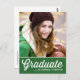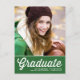 Bjud in familj och vänner med detta anpassningsbara examensbevis för årskurs 2023. Den har en vit retro-typografi på en blå bakgrund. Anpassa detta blå examensparty-kort genom att lägga till ditt foto, namn och skolnnamn. Detta foto-examensinbjudningskort är perfekt för gymnasie- eller högskoleexamen.