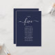 Mörkblå Skript Bord Nummer 5 Sittplatskarta Inbjudningar