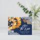 Dessa jutesäck och spets solros bröllop spara datum vykort är idealiska för ditt mörkblå rustika bröllop inspirerat av solrosor. Matchande artiklar finns tillgängliga.