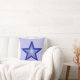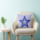 Modern design med en "lysande" blå och vit stjärna på en blekblå bakgrund, med ditt val av text på baksidan. Kastkudde med en anpassningsbar design som du kan anpassa med din egen text, bilder och idéer. Detta är en digital konstbild skapad med hjälp av originalfotografier och digitala tekniker och tryckt på tyg, den lyser inte eller innehåller riktiga glitter.