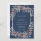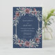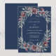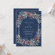 Denna design har en djup marinblå bakgrund som skapar en slående kontrast med de ömtåliga dammrosa blomstermönstren. Silvergrå bladverk och vita bär är arrangerade i en elegant komposition som frammanar en kylig säsongsestetik. Dämpade toner av mauve och skiffer ger en sofistikerad och formell stämning för en vintersammankomst.