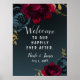 Mörkblått stämningsfullt blommotiv med guldgrönt b poster