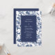 Vi presenterar vår utsökta bröllopsinbjudan med en sofistikerad blomsterdesign i fängslande mörkblått och vitt. Denna inbjudan är noggrant utformad för att förmedla en känsla av elegans och romantik, och sätter den perfekta tonen för din speciella dag.