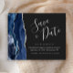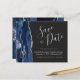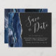 Den här eleganten sparar datumkortet med en marinblå vattenfärgsagat gräns som trimmas med faux silver glitter. Anpassadet kombinerar handskriftsskript för silver grått, tryckplåt och kursivt typsnitt på mörkens bakgrund. Den omvända sidan har en matchande marin blå och silver-agate-design.