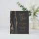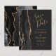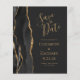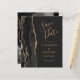 Det moderna bröllop spara datum-kortet från elegantens lämnat kant har en svart vattenfärgad agate gräns som trimmas med faux guld glitter. Med anpassadet kombinerar du handskrift, formatmall och kursivt typsnitt i guld-färgad med en bakåtriktad bakgrund. Den omvända sidan har en matchande svartvit och guld agate-design.