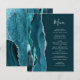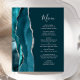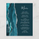 Den moderna bröllop-menyn på den lämnat kant i eleganten har en färgad vattenfärgad tårblåfärgad gräns som trimmas med faux silver glitter. Anpassadet kombinerar handskriftsskriptet silver grått och kopparplåt typsnitt på mörkens bakgrund. Den omvända sidan har en passande teal och silver agate-design.