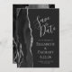 Den här eleganten är modern för att spara datumkortet och har en svart vattenfärg som ruttnar gräns med faux silver glitter. Anpassadet är ljust silver grått på en svartvit bakgrund. Den omvända sidan har en matchande svartskiva och silver glitter-design.
