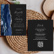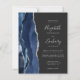Den moderna bröllopsinbjudan från elegantens lämnat kant har en marin blå vattenfärgsagat gräns som trimmas med faux silver glitter. Anpassadet kombinerar handskrift, tryckplåt och kursivt typsnitt i silver grått mot mörkens bakgrund. Lägg till ytterligare information på baksidan tillsammans med en QR-kod som hjälper dina gäster att besöka webbplatsen för bröllop.