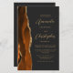 Den moderna bröllopsinbjudan från elegantens lämnat kant har en bränd orange och en rost vattenfärg agate gräns trimmad med faux guld glitter. Anpassadet kombinerar skript av guld-färgad och sans serif typsnitt på en svart bakgrund. Den omvända sidan ger plats för bröllop-information på en solid skifferbakgrund, tillsammans med en QR-kodgäst som kan söka på din webbplats och OSA, vilket sparar kostnaderna för utskrift och utskick av separat OSA kort.
