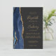 Den moderna bröllopsinbjudan från elegantens lämnat kant har en marin blå vattenfärgsagat gräns som trimmas med faux guld glitter. Med anpassadet kombineras handskrift, tryckplåt och kursivt typsnitt med guld färgad på en mörk grått-bakgrund. På baksidan finns utrymme för information om bröllop på en solid mörk-bakgrund, tillsammans med en QR-kodgäst som kan söka på webbplatsen och OSAN, vilket sparar kostnaderna för utskrift och utskick av separat OSA kort.