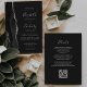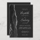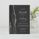Den här elegantens lämnat kant har en modern bröllopsinbjudan med en svart vattenfärg som agerade i gräns som trimmas med faux silver glitter. Anpassadet kombinerar handskrift, tryckplåt och kursivt typsnitt i ljust silver-grått mot svart bakgrund. På baksidan finns utrymme för information om bröllop på en solid mörk-bakgrund, tillsammans med en QR-kodgäst som kan söka på webbplatsen och OSAN, vilket sparar kostnaderna för utskrift och utskick av separat OSA kort.
