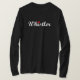 Visar "Whistler" i ord i ett snyggt, vitt skriptteckensnitt med ett rött kanadensiskt apel löv som prickar "i". Whistler är populärt hos kanadensare, amerikaner och andra resenärer för vintersporter. Coola souvenir eller gåva till besökare, turister, skidåkare, snowboarders, trekkers, vandrare och Natur älskare till Rocky mountains nordost om Vancouver, British Columbia. Kom ihåg din resa med den här fina, koncisa designen. En underbar design om du är i Whistler på Kanadadagen.