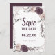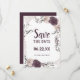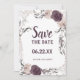 Modern vinterblommigt med djup lila och rosa ros. Spara datumet skrivs i en stor teckensnittskombination för trendiget. Ditt bröllop-datum är skrivet med stora, feta siffror och namn följer efter. All text kan redigeras. Det här objektet är en del av Lila Sage-samlingen. Du kan använda komponenterna för att skapa en unik spara datummallsuppsättningen.