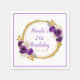 Fin födelsedagsfest napkin med mörk lila och guld faux glitter ram med blommigt blomsterarrangemang. Perfekt för en födelsedagsfest. Ord kan ändras till kostym med dina egna uppgifter eller krav