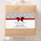 Damaskmönster med röda satinband - Vattenflasketikett / Vinflasketikett