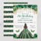 Fira en speciell födelsedag med stil med denna eleganta inbjudan som visar en mörkhyad prinsessa i en fantastisk mörkgrön klänning. Omgiven av vackra blommor och ömtåliga fjärilar utstrålar denna design sofistikation och charm. Perfekt för en magisk födelsedagsfirande, den fångar essensen av grace och skönhet, vilket gör den idealisk för alla som letar efter en unik och personlig födelsedagsinbjudan. Sätt tonen för en oförglömlig händelse med denna förtrollande och stilfulla inbjudan.