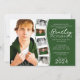 Mörk tallgrön och vit modern filmremsa 6 foto examensinbjudan. Inkluderar fotofack för 6 bilder.