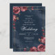 Mörkröd Blommig Marinblå Valvbåge Bröllop Inbjudningar