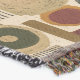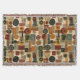 Sofistikerad filt med geometriskt mönster från mitten av seklet med lager av cirklar, valv, trianglar och rektanglar i skoggrön, bränd orange, ockra och kräm på svart bakgrund. Rika texturer och retro-moderna former skapar en djärv design som passar Bauhaus-älskare, fans av vintage-dekoration och alla som dras till dyster modern stil.
