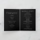 Elegant stämningsfull blommig bröllopsprogram med en övre kant av lila och vinröda blommor, frodig grön lövverk och mörka bär. Den lila blommande bröllopsprogrammet kompletteras av elegant, modern typografi. Anpassa framsidan av det gotiska blombröllopsprogrammet med era namn, bröllopsdatum och plats. Insidan av det vikta bröllopsprogrammet visar ordningen för ceremonin och en lista över er bröllopsfest. Designad för att samordna med vår Moody Gothic Floral bröllopssamling.
