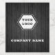 Trendig mörkgrå träbild och vit hexagon för logotyp