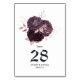 Mörkt lila och roséguld blommig bröllop bordsnummer