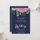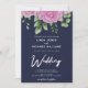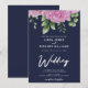 Mörkt marinblå akvarell rosa rosor bröllopsinbjudan mall design redo för dig att anpassa. Denna eleganta bröllopsinbjudan design har rosor och en handskriven teckensnitt. Du kan anpassa denna inbjudan med dina egna detaljer och färger.