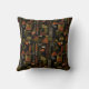 Sofistikerad mitten av seklet geometrisk mönster kastkudde med lager av cirklar, valv, trianglar och rektanglar i skoggrön, bränd orange, ockra och kräm på en svart bakgrund. Rika texturer och retro-modern formgivning skapar en djärv design som är idealisk för Bauhaus-älskare, fans av vintage-dekoration och alla som dras till dyster modern stil.
