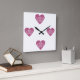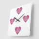 Mörkt rosa hjärta med vitt filigransmönster fyrkantig klocka