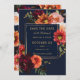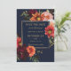 Anpassa detta eleganta bröllop sparad datum enkelt och snabbt. Klicka bara på knappen Redigera med hjälp av designverktyg för att redigera texten, ändra teckensnitt och typsnittsfärger. Med vackra realistiska burgunderfärgade pioner, rosor i rosa och bränd orange samt tusenskönor mot en mörk stämningsfull marinblå bakgrund. Matchande artiklar finns tillgängliga i butiken. (c) Somerset Fine Paperie