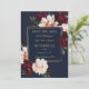 Anpassa detta eleganta bröllop sparad datum enkelt och snabbt. Klicka bara på knappen Redigera med hjälp av designverktyg för att redigera texten, ändra teckensnitt och teckensnittsfärger. Med vackra realistiska burgunderfärgade, rosa peonblommor mot en mörk marinblå bakgrund. Matchande artiklar finns tillgängliga i butiken. (c) Somerset Fine Paperie