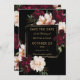 Anpassa detta eleganta bröllop sparad datum enkelt och snabbt. Klicka bara på knappen Redigera med hjälp av designverktyg för att redigera texten, ändra teckensnitt och typsnittsfärger. Med vackra realistiska burgunderfärgade, rosa peonblommor mot en livfull svart bakgrund. Matchande artiklar finns tillgängliga i butiken. (c) Somerset Fine Paperie