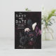 Mörkt stämningsfullt bröllop med romantiska blommo inbjudningar