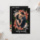 Meddela din förlovning med ett slående, konstfullt utformat kort som perfekt fångar er kärlekshistoria. Framsidan visar ert foto ramad av dramatiska blommor i frodiga, djupa toner mot en mörk och stämningsfull bakgrund, som blandar elegans med en kant. Baksidan inbjuder vänner och familj in i er resa med ett utrymme att dela er förlovningshistoria. Denna design är idealisk för par som vill ha ett meddelande som känns lika fängslande och oförglömligt som deras egen romans.