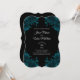 Elegant och Stylish - Bröllopsinbjudan. Bröllopstemat Teal Roses är en blandning av moderna och traditionella blommor med tealrosor som kontrasterar och accentuerar den svarta bakgrunden underbart. Dessa eleganta blommor är perfekta för alla era bröllopsdekorationer och pappersvaror. Denna vackra design är mest lämplig för bröllop där ni har valt att införliva en touch av turkos och mörkblågrönt.
