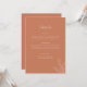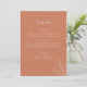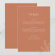 Detta mörka terrakottakort för bröllopsdetaljer har elfenbensfärgade botaniska accenter och en varm lerkaka-bakgrund. Perfekt för att lista boenden, mottagningsinformation eller webblänkar, detta eleganta infogade kort koordinerar sömlöst med terrakotta-monokroma inbjudningsserien. Helt anpassningsbart.